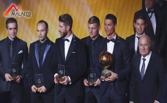 بينما ضمت القائمة 5 لاعبين من ريال مدريد هم النجم البرتغالي كريستيانو رونالدو حامل لقب الجائزة في العامين الماضيين، وغاريث بيل وكريم بنزيمة وخاميس رودريغيز وتوني كروس.