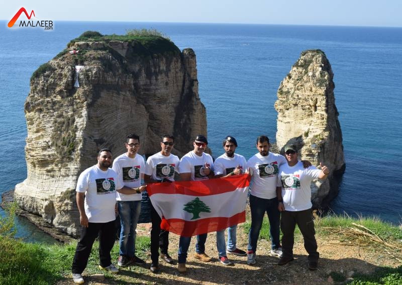 كما كان للفريق زيارة الى منطقة الروشة امام صخرة الروشة لاخذ الصور التذكارية في هذا المعلم السياحي مع العلم اللبناني.