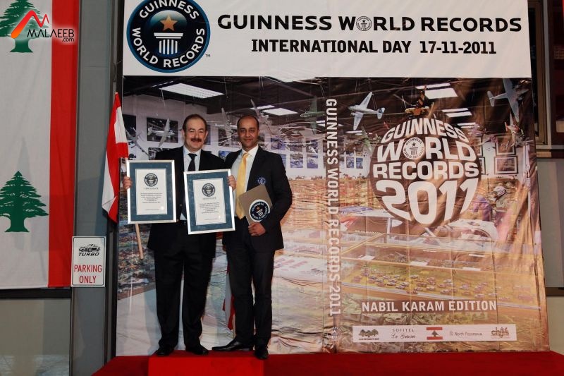 تسلّم بطل لبنان السابق للراليات وسباقات السرعةنبيل كرم شهادتين من مندوب "غينيس" للارقام القياسية اليمني طلال عمر كأكبر مالك للسيارات الرياضية المصغرّة في العالم وعددها سبعة وعشرون الفاً وسبعماية وسبعة وسبعين (27777) وللمجسّمات (ديوراما) وعددها  ثلاثماية وثلاثة وثلاثون (333) وذلك خلال حفل حاشد أقيم  في "معامل كرم  للأخشاب "(ذوق مصبح).