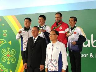 أضافت البعثة اللبنانية المشاركة في دورة الألعاب الآسيوية الخامسة للصالات والفنون القتالية المقامة حالياً في العاصمة التركمانية عشق أباد ميدالية برونزية جديدة إلى رصيدها، الذي أصبح 4 ميداليات بعد الأولى في الجوجيتسو والثانية والثالثة في المواي تاي وأخيراً في منافسات البلياردو بواسطة اللاعب جورج لطيف، والذي حققها بعد تأهله إلى نصف النهائي من فوز على لاعب فليبيني في الدور ربع النهائي ( 40 – 30 )، لكنه أخفق في التأهل للنهائيات بعد خسارته أمام لاعب فيتنامي في نصف النهائي ( 29 – 40 ) مهدراً فرصة الحصول على إحدى الميداليتين الذهبية أو الفضيّة.