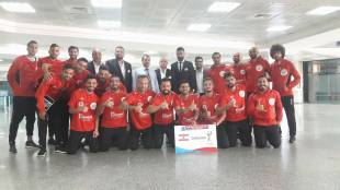 وكان في استقبال البعثة امام مدخل فندق الخيام غاردن رئيس الاتحادين اللبناني والعربي احمد دنش، الذي هنأ اعضاء البعثة على سلامتهم، بعد رحلة غير قصيرة.