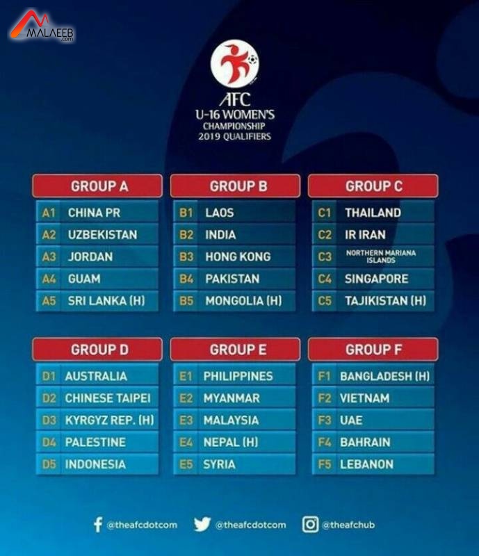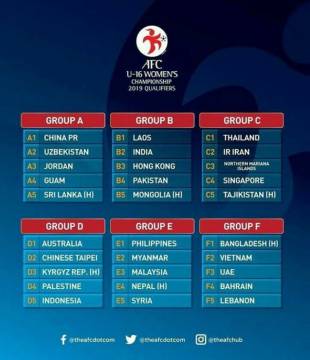 قرعة كأس آسيا تحت 16 للناشئات وتحت 19 سنة للشابات