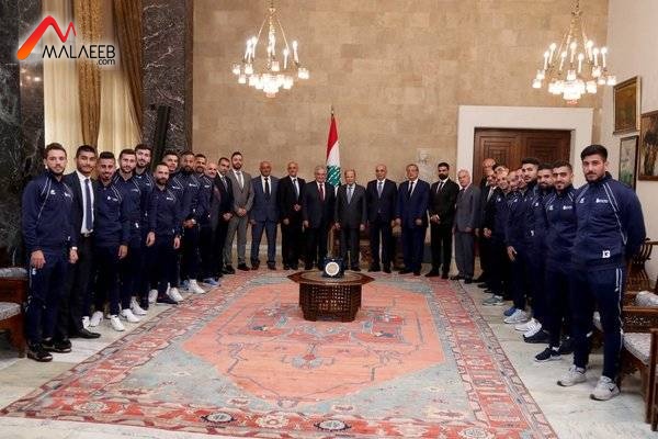 بعد ذلك، هنأ الرئيس عون اعضاء الفريق فردا فردا وتسلم درع المركز الثالث وقميص النادي الذي حمل اسمه والرقم 1 . ورافق الدكتور صفير في الزيارة رئيس لجنة كرة الصالات (الفوتسال) في الاتحاد اللبناني لكرة القدم السيد سيمون الدويهي ورئيس نادي بنك بيروت السيد حكمت البقاعي واللاعبين والاداريين.