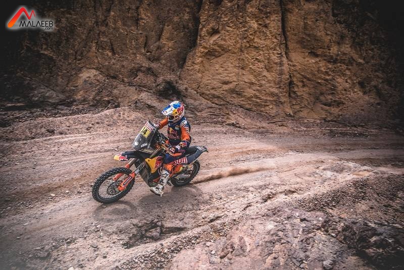 وافتتح الدراج البريطاني سام ساندرلاند (كيه تي أم) سجّل الفوز بالنسخة الـ 41 من رالي داكار بتحقيقه التوقيت الأسرع في المرحلة الخامسة، للدراجات النارية متقدماً بفارق 3:23 د على الفرنسي كزافييه دي سولتريه (ياماها) و3:32 د على النمساوي ماتياس فالكنر (كيه تي أم).