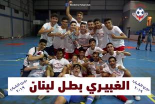 توّج فريق بلدية الغبيري ببطولة لبنان لفرق الشباب في كرة الصالات "الفوتسال" للموسم الثاني على التوالي، منهياً سلسلة الدور النهائي التي خاضها بمواجهة الحرية صيدا بنتيجة 3-1، وبعد المباراة التي اجريت في مجمع الرئيس نبيه بري في حارة صيدا تسلم قائد الفريق حسين حمية كأس البطولة من مدير بطولات كرة الصالات حسين ديب بحضور رئيس النادي ماهرسليم ونائب رئيس بلدية الغبيري الحاج أحمد الخنساء وعضو المجلس البلدي المهندس وسام الحركة.