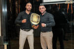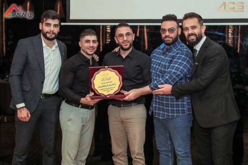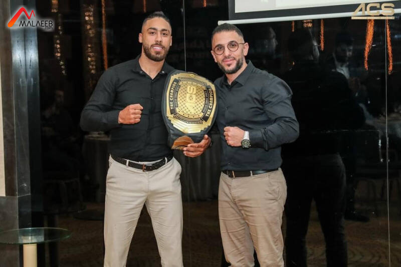 ثم كرّم عجاج المدرب والبطل الدولي باسم ابراهيم وسلّم الى البطل احمد القاضي حزام "آي. سي. أس" وسط تصفيق الحاضرين.