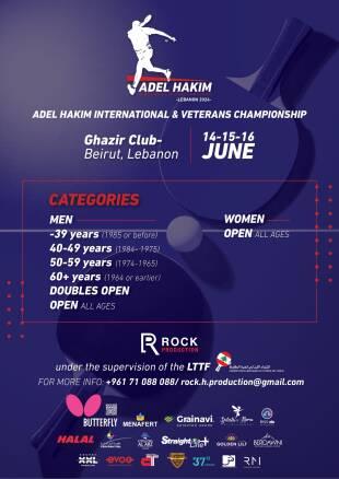 تنظّم"روك برودكشن" برئاسة حامل لقب كأس لبنان في كرة الطاولة للعام 2019روك حكيم "بطولة عادل حكيم الدولية المفتوحة في كرة الطاولة" بنسختها الخامسة في 14 و15 و16 حزيران الجاري في قاعة انطوان شويري في نادي غزير، تحت اشراف الاتحاد اللبناني للعبة. وسيكون عشاق الرياضة عمومًا وكرة الطاولة خصوصًا على موعد جديد مع بطولة كبيرة سيشارك فيها لاعبون ولاعبات من لبنان والخارج، وستطبّق خلالها قوانين وانظمة الاتحاد الدولي للعبة.