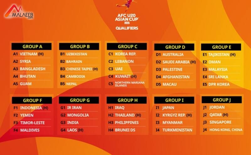 وجاءت نتائج قرعة تصفيات كأس آسيا للشباب تحت 20 عاماً 2025 على الشكل التالي: