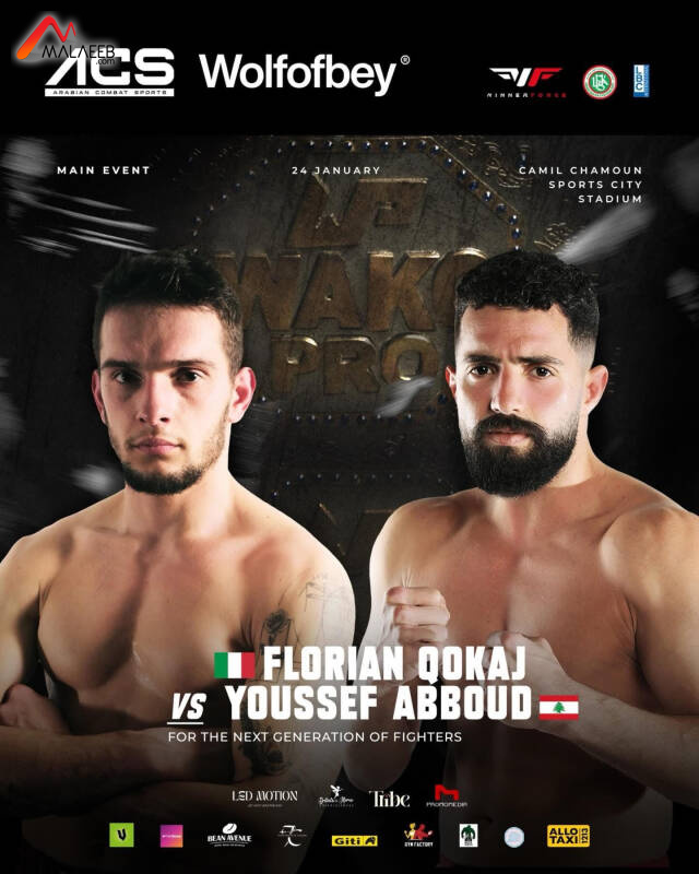 وسيشهد مساء السبت 11 نزالاً في أمسية رياضية قتالية بامتياز بمشاركة لاعبين محترفين من ايطاليا ولبنان وسوريا وفلسطين والكويت والجزائر والامارات والعراق والأردن ومصر والمغرب. وعلى رأس النزالات المواجهة الختامية للأمسية و"قمّة" المواجهات و"أم المعارك" بين اللبناني يوسف عبود والايطالي فلوريان كوكاج لاحراز لقب "حزام بطولة العالم للمحترفين" لوزن 69 كلغ.