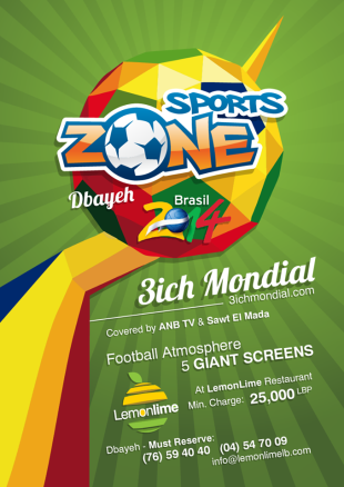 أطلق مجمٌع“Sports Zone” مهرجان "عيش مونديال" حيث يمكن لمحبي وعشاق كرة القدم متابعة المباريات من خلال شاشات عملاقة في أجواء استاد حقيقي.